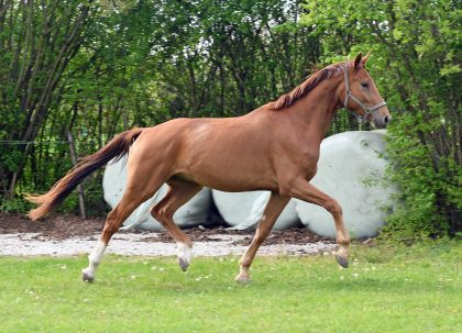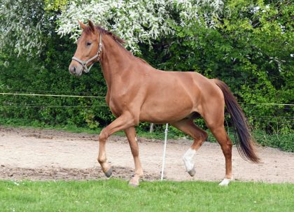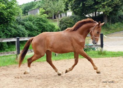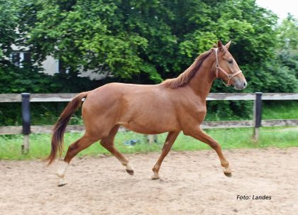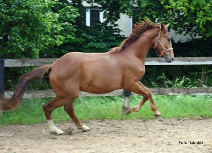 Werthvoll (*2022 v. Werther x Goethe x Lord Incipit) wird seinem Namen gerecht! Er ist das Ergebnis eines geglückten Experiments vom Hannoveraner Verband: bewährte Vererber treffen auf moderne Stutengrundlage! Der junge Mann stammt aus dem direkten Stamm des Cicero Z (FLAUTE, Hannover Stutenstamm 3192801, Schridde 396). Viel Schwung bei gleichzeitiger Aufrichtung, bergauf. Eignung: Dressur, Springen.